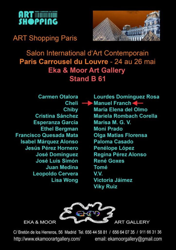 Ha sido una gran satisfación poder mostrar mi obra en el Salón Internacional de Arte Contemporaneo en Carrousel de Louvre (Paris), gracias a la Galeria de arte Eka & Moor y el espacio en su stand. El salón se ha celebrado del 24 al 26 de mayo de 2019.