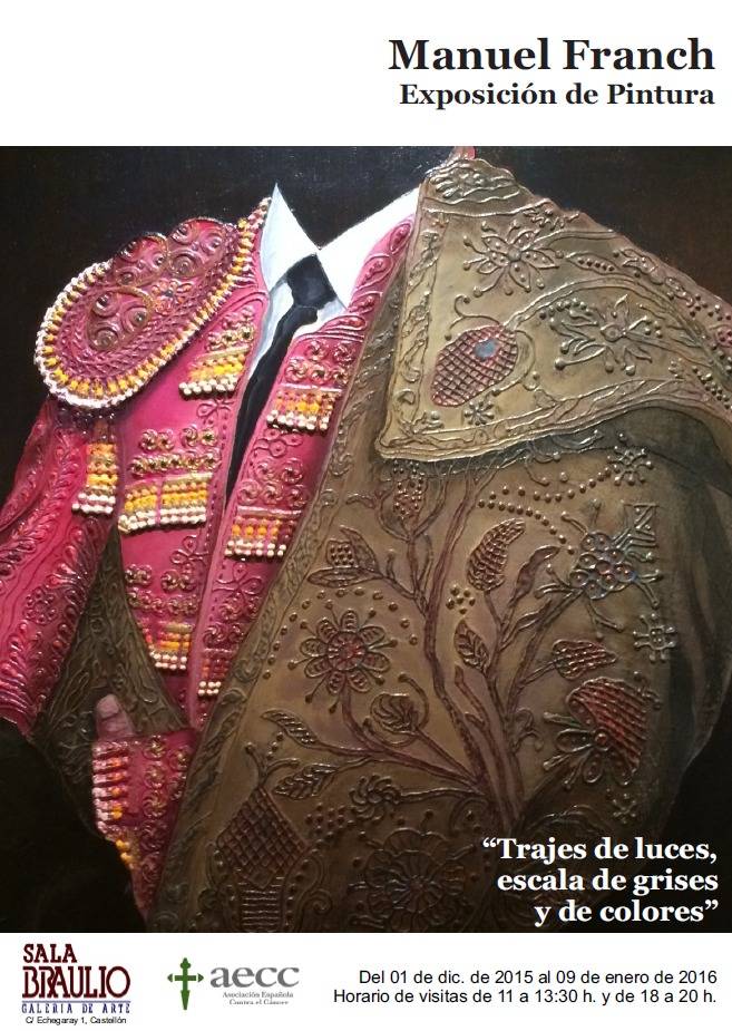 Tengo el honor de aparecer con una exposición de pintura taurina en el programa de Festes de la Mare de Déu de Gràcia 2015 de mi pueblo natal, Vila-real. Se titula «Trages de llums, escala de grisos i colors»